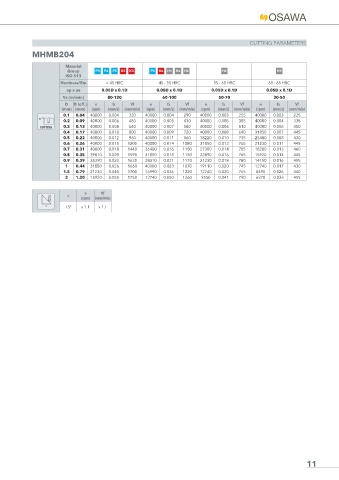 (mm) (mm) (rpm) (mm/z) (mm/min) (rpm) (mm/z) (mm/min) (rpm) (mm/z) (mm/min) (rpm) (mm/z) (mm/min)