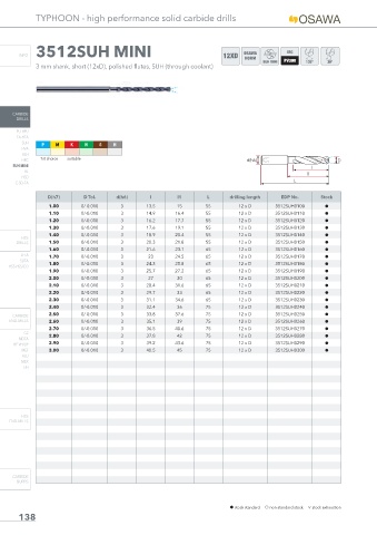 DRILLS 1.50 0/-0.010 3 20.3 21.8 55 12 x D 3512SUH0150 h