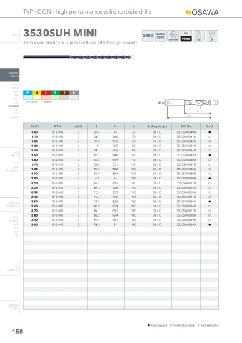 DRILLS 1.50 0/-0.010 3 47.3 48.8 85 30 x D 3530SUH0150 h