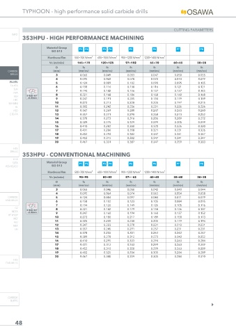 Vc (m/min) 165÷170 120÷125 97÷102 65÷70 60÷65 50÷55