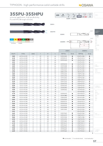 3.40 +0.016/+0.004 6 23 28 66 355PU0340 h 355HPU0340 h DRILLS