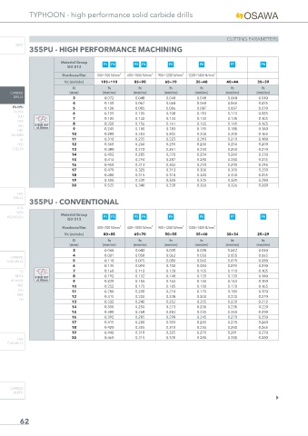 Vc (m/min) 105÷110 85÷90 65÷70 35÷40 40÷44 35÷39