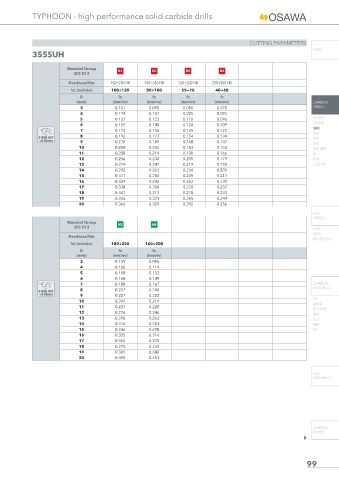 (mm) (mm/rev) (mm/rev) (mm/rev) (mm/rev) CARBIDE