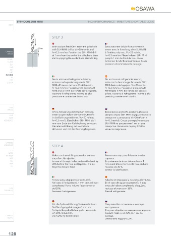 with SUH MINI drill at Vc=20 m/min and entrer avec le foret long série SUH MINI