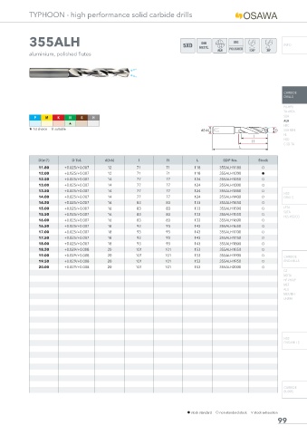 19.50 +0.029/+0.008 20 101 101 153 355ALH1950 f END-MILLS