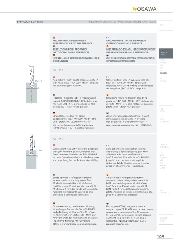 with SUH MINI drill at Vc=20 m/min and entrer avec le foret long série SUH MINI