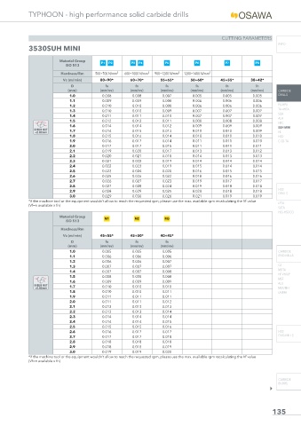 Vc (m/min) 80÷90* 60÷70* 55÷65* 50÷60* 45÷55* 38÷42*