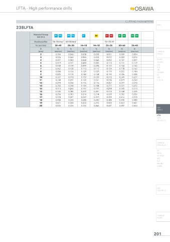 Vc (m/min) 30÷40 20÷30 14÷18 14÷18 25÷35 50÷60 35÷45