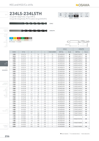 DRILLS 2.50 0/-0.014 2.5 62 95 10 P234LS0250 h P234LSTH0250 h