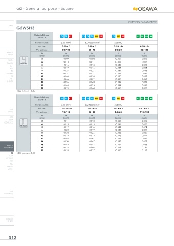 DRILLS Vc (m/min) 90÷110 60÷80 40÷60 110÷130