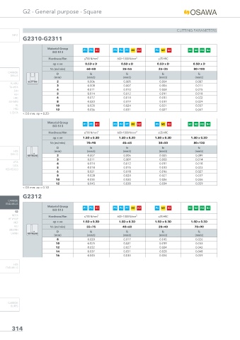 ALU Vc (m/min) 55÷75 40÷60 20÷40 70÷90