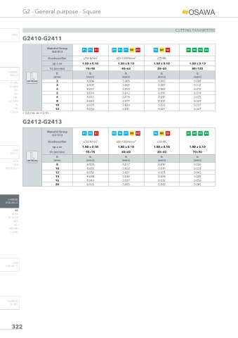 DRILLS Vc (m/min) 55÷75 40÷60 20÷40 70÷90