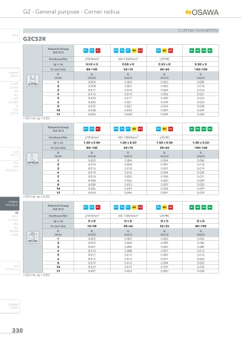 Vc (m/min) 70÷90 40÷60 25÷35 80÷100