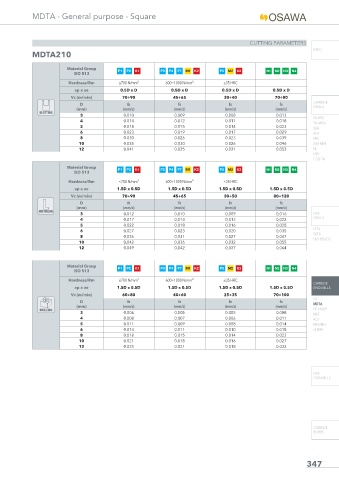 Vc (m/min) 70÷90 45÷65 30÷40 70÷80