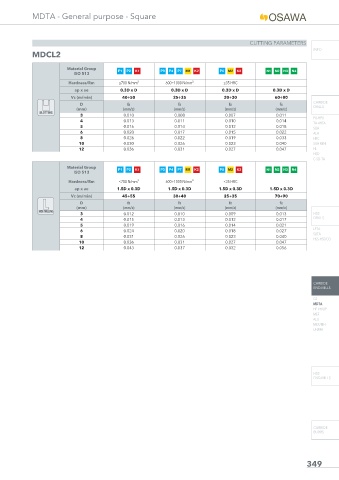 Vc (m/min) 45÷55 30÷40 25÷35 70÷90