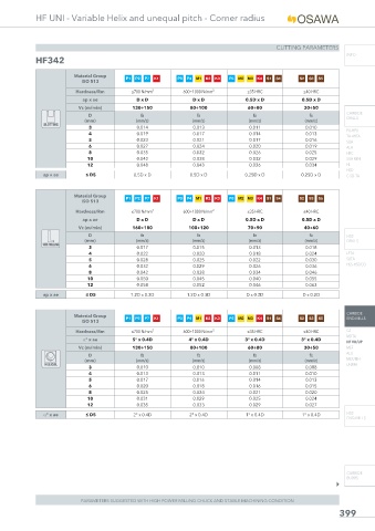 PARAMETERS SUGGESTED WITH HIGH POWER MILLING CHUCK AND STABLE MACHINING CONDITION