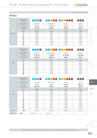PARAMETERS SUGGESTED WITH HIGH POWER MILLING CHUCK AND STABLE MACHINING CONDITION