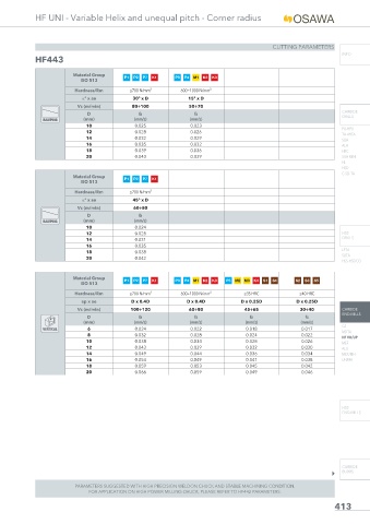 FOR APPLICATION ON HIGH POWER MILLING CHUCK, PLEASE REFER TO HF442 PARAMETERS.
