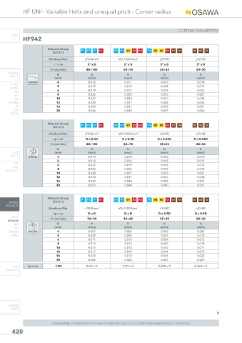 PARAMETERS SUGGESTED WITH HIGH POWER MILLING CHUCK AND STABLE MACHINING CONDITION