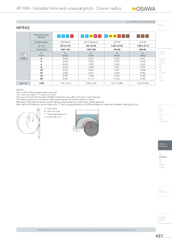 PARAMETERS SUGGESTED WITH HIGH POWER MILLING CHUCK AND STABLE MACHINING CONDITION