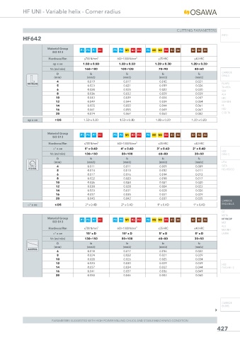 PARAMETERS SUGGESTED WITH HIGH POWER MILLING CHUCK AND STABLE MACHINING CONDITION