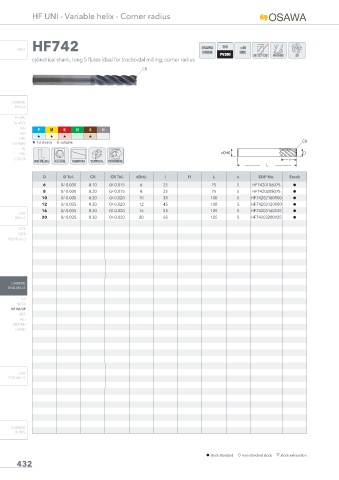 cylindrical shank, long 5 flutes ideal for trochoidal milling, corner radius