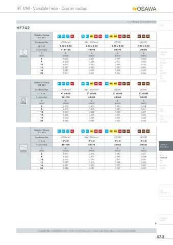 SIDE MILLING (mm) (mm/z) (mm/z) (mm/z) (mm/z)