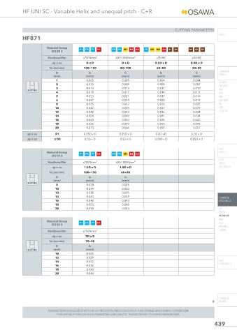FOR APPLICATION ON HIGH POWER MILLING CHUCK, PLEASE REFER TO HF840 PARAMETERS.