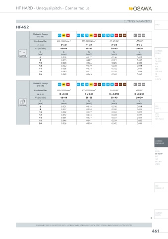 PARAMETERS SUGGESTED WITH HIGH POWER MILLING CHUCK AND STABLE MACHINING CONDITION