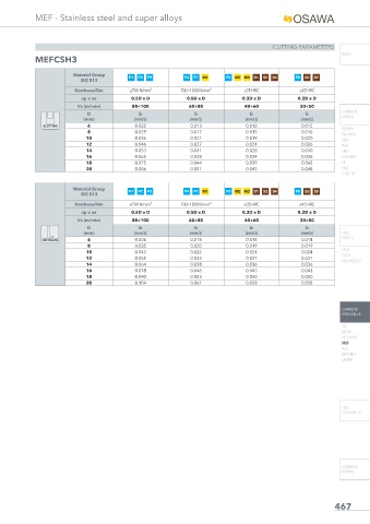 Vc (m/min) 80÷100 60÷80 40÷60 30÷50