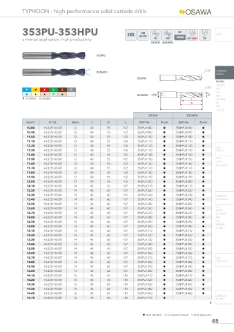 11.30 +0.025/+0.007 12 40 55 102 353PU1130 h 353HPU1130 h DRILLS