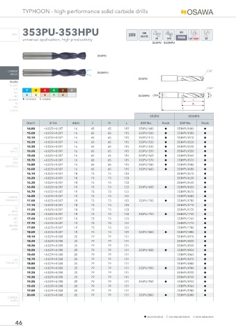 DRILLS 15.50 +0.025/+0.007 16 65 65 115 353PU1550 h 353HPU1550 h