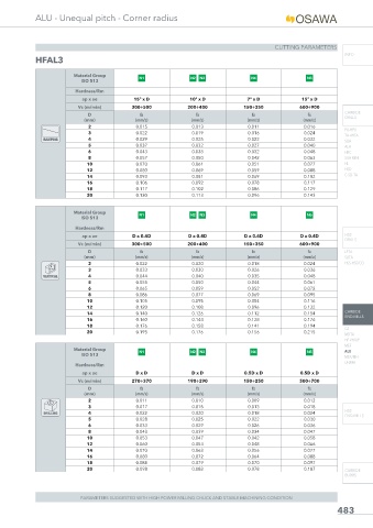 PARAMETERS SUGGESTED WITH HIGH POWER MILLING CHUCK AND STABLE MACHINING CONDITION