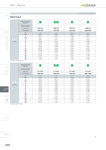 Vc (m/min) 300÷600 150÷350 150÷250 500÷900
