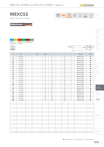 MEX (30÷55HRC) and MH (30÷70HRC) - Square