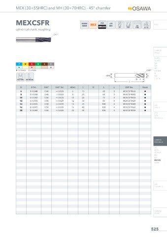 MEX (30÷55HRC) and MH (30÷70HRC) - 45° chamfer