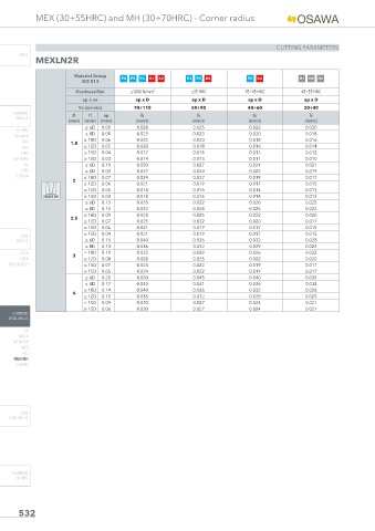 MEX (30÷55HRC) and MH (30÷70HRC) - Corner radius