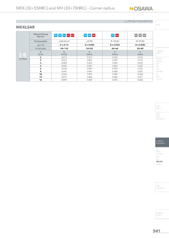 MEX (30÷55HRC) and MH (30÷70HRC) - Corner radius