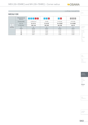 MEX (30÷55HRC) and MH (30÷70HRC) - Corner radius