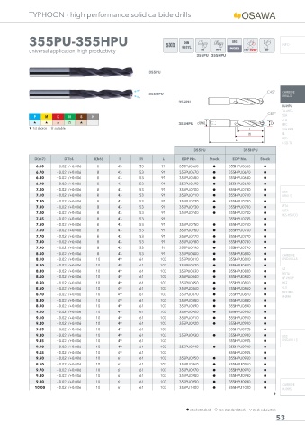 7.10 +0.021/+0.006 8 43 53 91 355PU0710 h 355HPU0710 h DRILLS