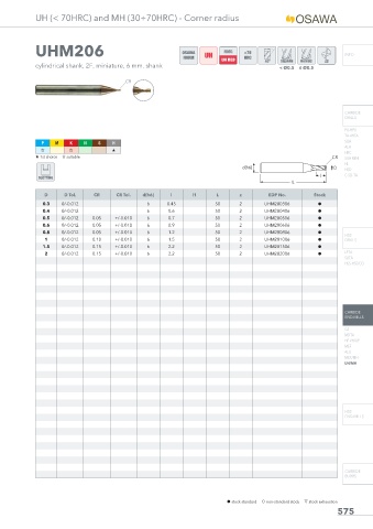 UH (< 70HRC) and MH (30÷70HRC) - Corner radius