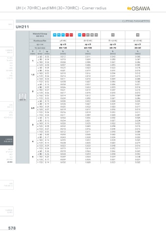 UH (< 70HRC) and MH (30÷70HRC) - Corner radius