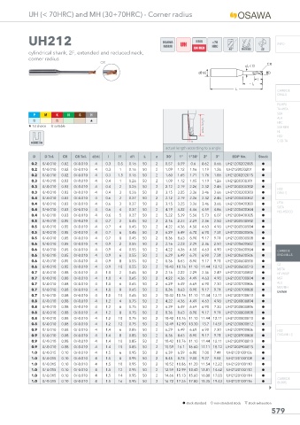 UH (< 70HRC) and MH (30÷70HRC) - Corner radius