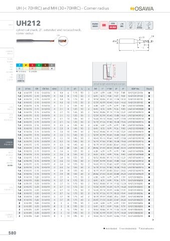 UH (< 70HRC) and MH (30÷70HRC) - Corner radius