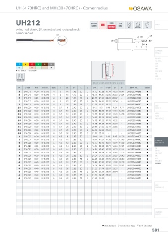 UH (< 70HRC) and MH (30÷70HRC) - Corner radius