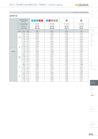 UH (< 70HRC) and MH (30÷70HRC) - Corner radius
