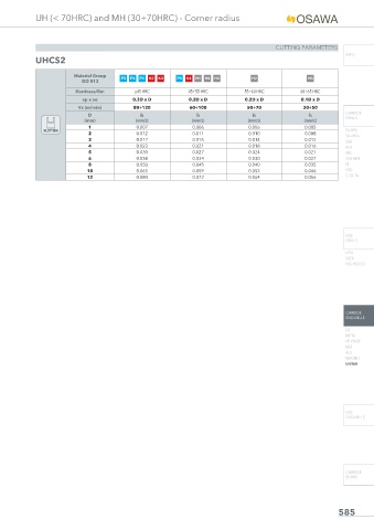 UH (< 70HRC) and MH (30÷70HRC) - Corner radius