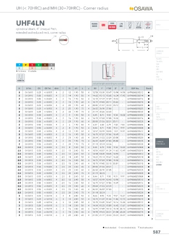 UH (< 70HRC) and MH (30÷70HRC) - Corner radius