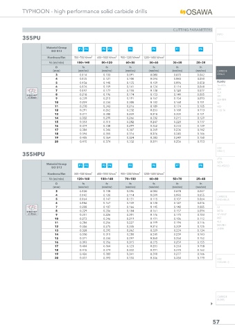 (mm) (mm/rev) (mm/rev) (mm/rev) (mm/rev) (mm/rev) (mm/rev) CARBIDE