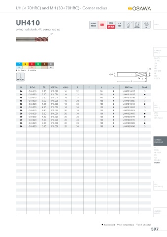 UH (< 70HRC) and MH (30÷70HRC) - Corner radius
